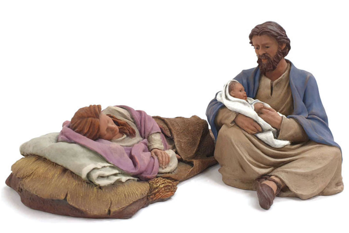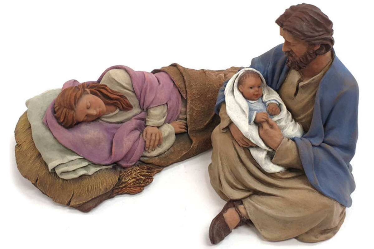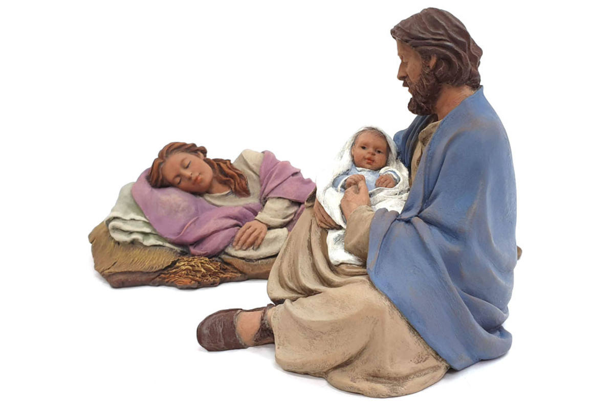 La escultora Montserrat Ribes ha creado unas figuras sublimes de la Sagrada Familia, con San José, la Virgen María y el Niño Jesús, esculpidas con maestría donde la serenidad de los rostros y la armonía de las formas transmiten el amor familiar en cada detalle.